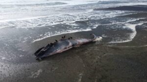 Encuentran ballena Sei de 17 metros varada en la costa del Parque Tepuhueico en Chonchi