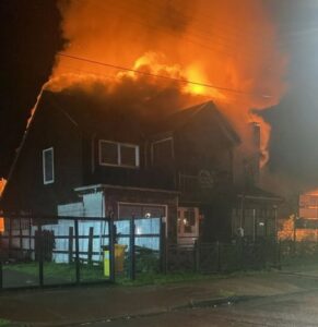 Un voraz incendio destruyó por completo una vivienda de dos pisos en la comuna de Queilen durante la madrugada