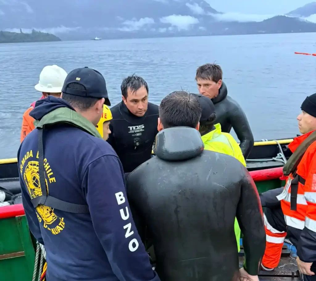 El puesto de mando, liderado por la delegada presidencial Paulina Muñoz, coordina el trabajo de la Armada, PDI, Bomberos y buzos civiles (muchos de ellos amigos personales de Marcelo Argel). La embarcación, que prestaba servicios a Salmones Austral, se encuentra en el fondo del mar, lo que ha dificultado las maniobras.